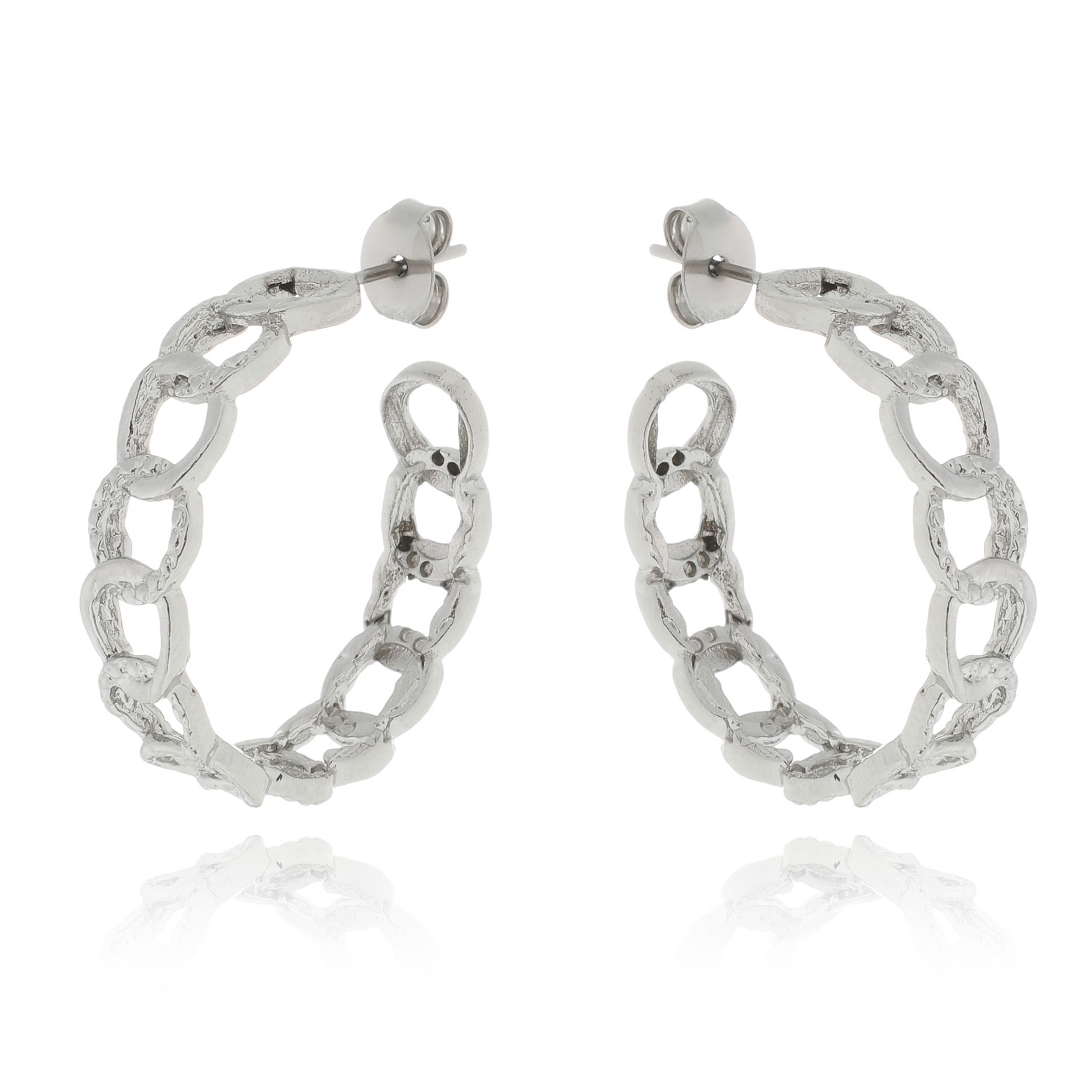 Os brincos de argolas são sempre uma excelente escolha para montar seu look, pois são peças atemporais que sempre estão na moda e ainda te deixam linda e elegante. Esse brinco de argola médio traz um design super estiloso de corrente grumet e fica muito fino e elegante usar com outras composições de piercing fake. Aposte nas argolas com design diferente que você não erra na escolha. Valorize o brilho que existe em você! Temos esse modelo em três opções de banho: ouro , ródio branco e ródio negro... Qual você prefere?