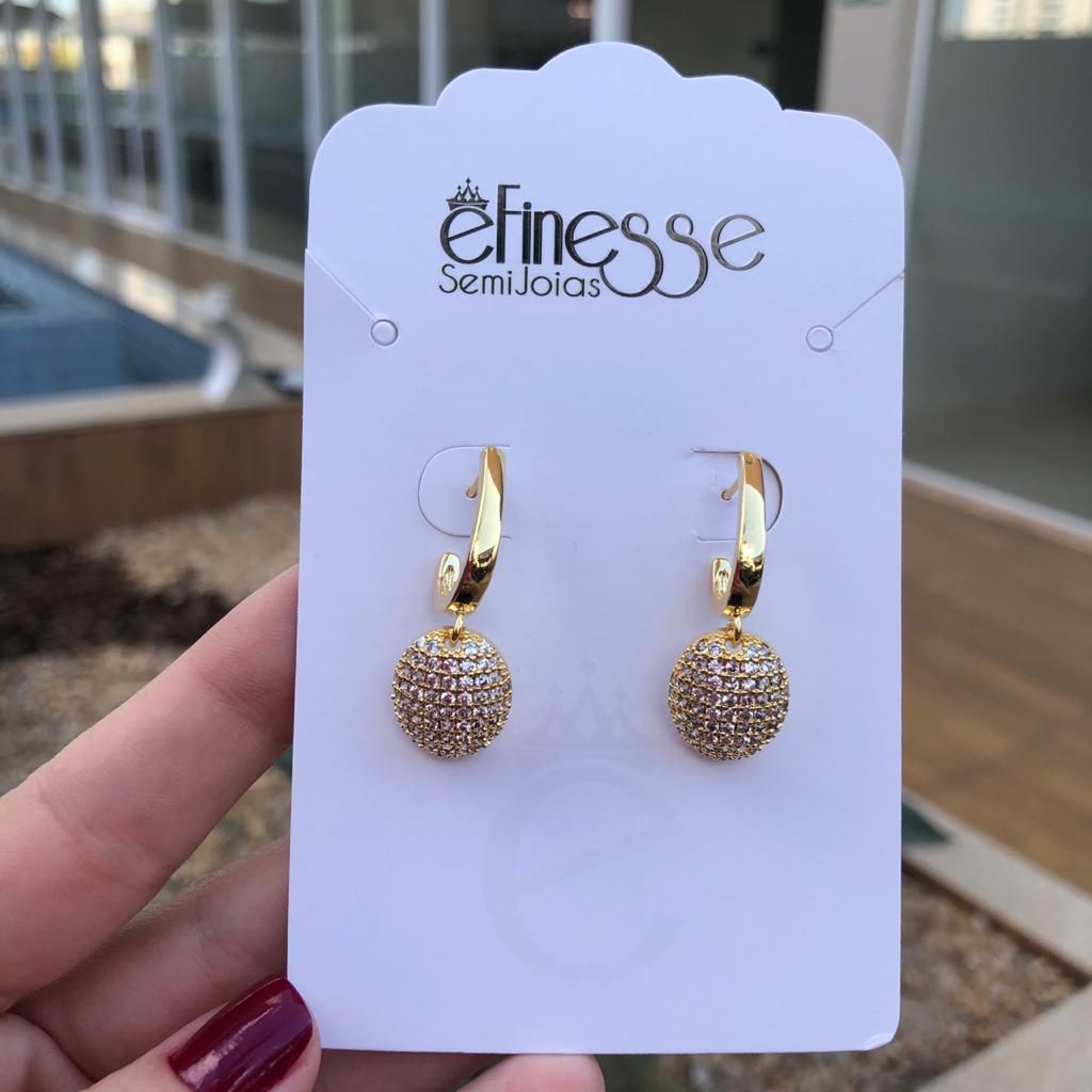 Modelo de brinco lindo e elegante trazendo muitas zircônias com brilho intenso. É um brinco de tamanho médio com fecho com tarracha.