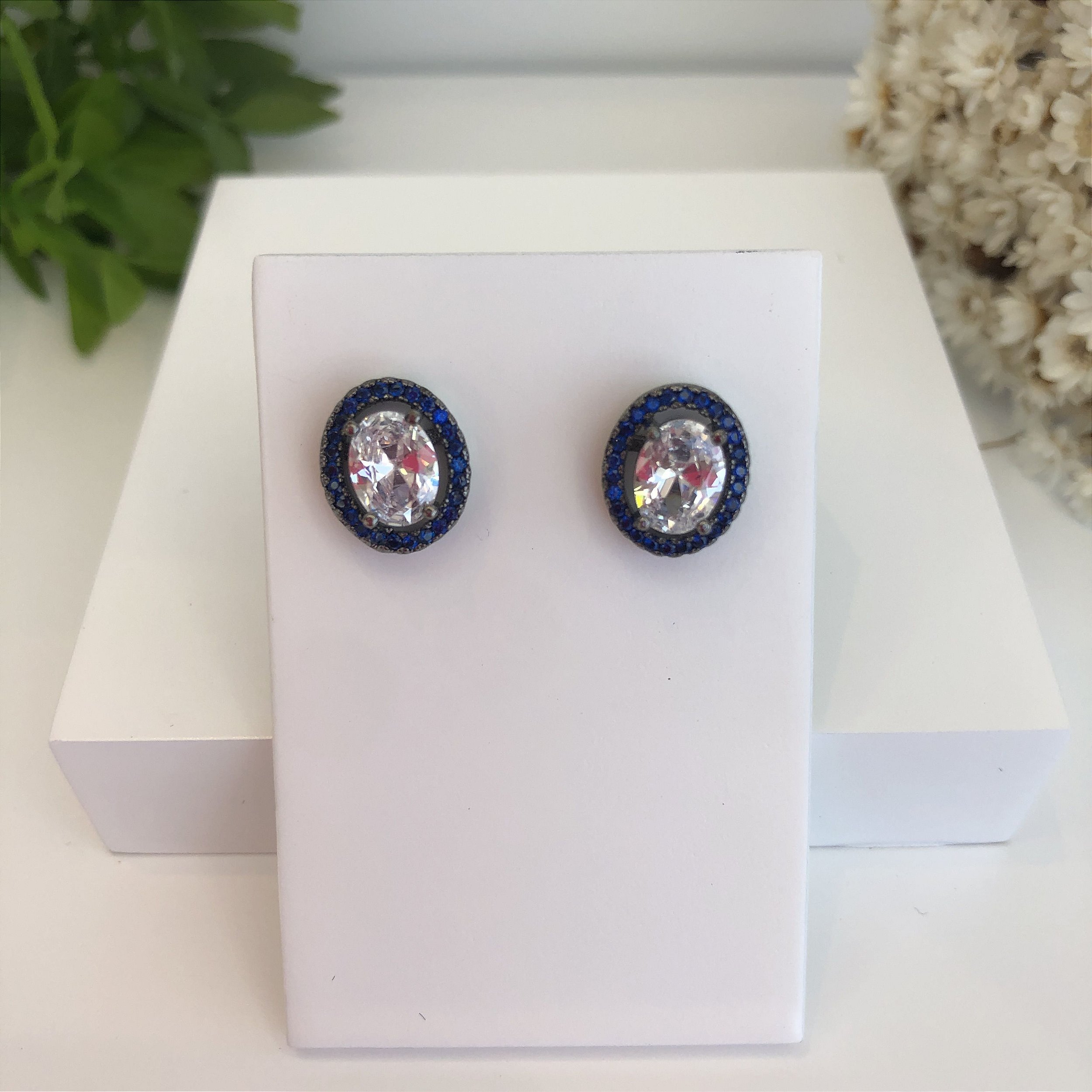 Brinco coração turmalina e gotinha cristal ródio branco - Garantia Efinesse Jóias e Recomendações de uso