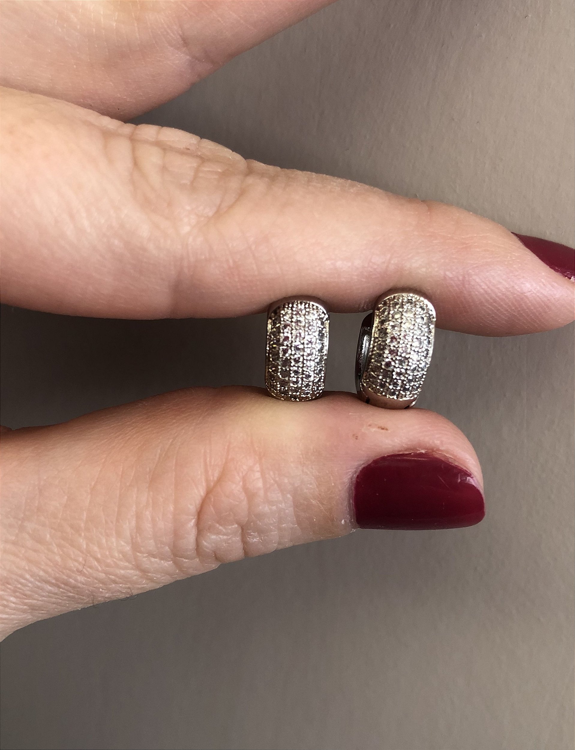 O brinco argola zircônia folheado em ródio brancoreflete um brilho único com sua cravação das zircônias serem micros o que o faz uma joia belíssima.