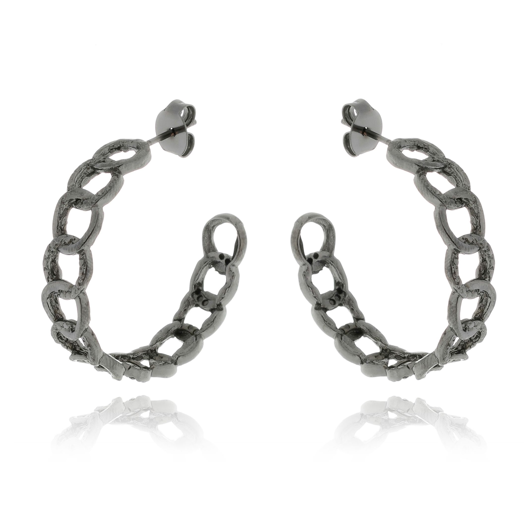 Os brincos de argolas são sempre uma excelente escolha para montar seu look, pois são peças atemporais que sempre estão na moda e ainda te deixam linda e elegante. Esse brinco de argola médio traz um design super estiloso de corrente grumet e fica muito fino e elegante usar com outras composições de piercing fake. Aposte nas argolas com design diferente que você não erra na escolha. Valorize o brilho que existe em você! Temos esse modelo em três opções de banho: ouro , ródio branco e ródio negro... Qual você prefere?