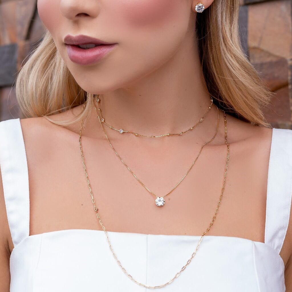 O colar ponto de luz desse mix tem a corrente de 40 cm com fecho lagosta + extensor e o pingente de 8 mm, sendo que o brinco que acompanha o mix também é um ponto de luz 8mm. A gargantilha choker é um luxo com bolinhas e mini pontos de luz intercalados, dando um sentido delicado e elegante para a composição; essa choker possui 30 cm e mais um extensor para que você consiga regular o tamanho que preferir usar; possuí também fecho lagosta. Por último, o colar mais longo de 60 cm que está dentro do kit é uma corrente cartier, com fecho lagosta; o modelo que as blogueiras estão amando fazer combinações em seus looks. Esse é o mix ideal para você que gosta de unir beleza, delicadeza, variedade e o melhor qualidade, pois todas as peças são antialérgicas, livre de alergia.