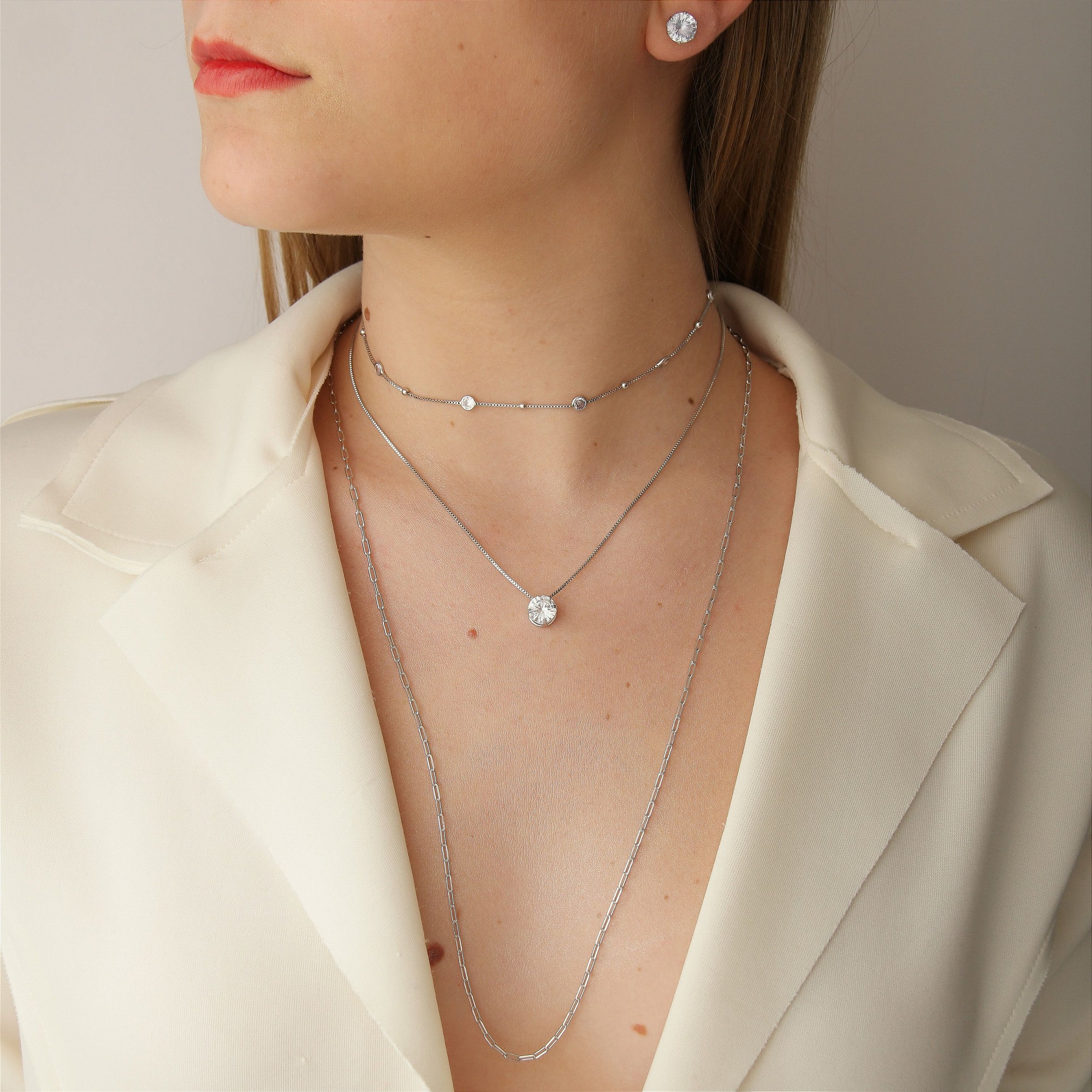 O colar ponto de luz desse mix tem a corrente de 40 cm com fecho lagosta + extensor e o pingente de 8 mm, sendo que o brinco que acompanha o mix também é um ponto de luz 8mm. A gargantilha choker é um luxo com bolinhas e mini pontos de luz intercalados, dando um sentido delicado e elegante para a composição; essa choker possui 30 cm e mais um extensor para que você consiga regular o tamanho que preferir usar; possuí também fecho lagosta. Por último, o colar mais longo de 60 cm que está dentro do kit é uma corrente cartier, com fecho lagosta; o modelo que as blogueiras estão amando fazer combinações em seus looks. Esse é o mix ideal para você que gosta de unir beleza, delicadeza, variedade e o melhor qualidade, pois todas as peças são antialérgicas, livre de alergia.