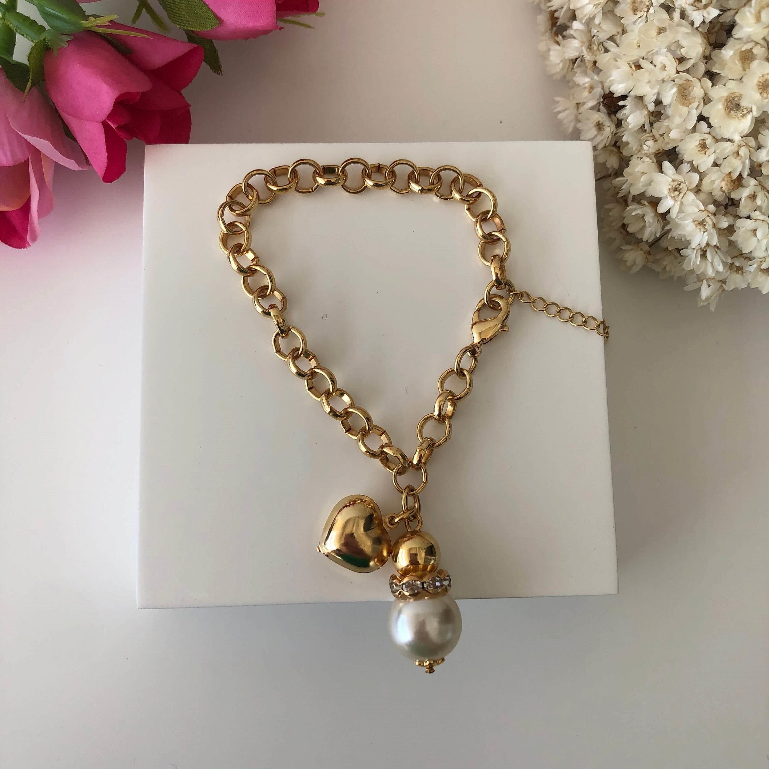 Pingente: 2cm Perola + bolinha e 1cm coração