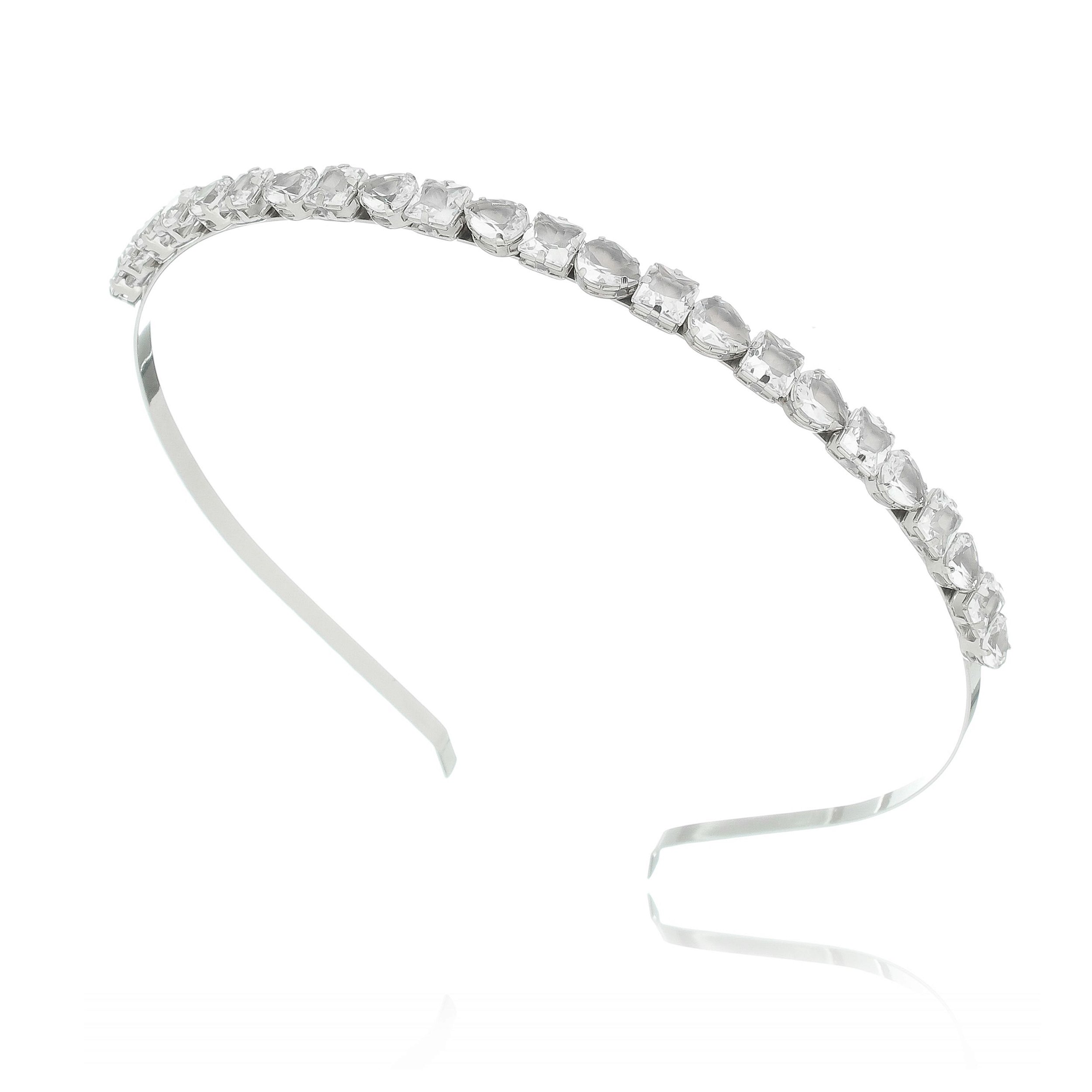 Nossa tiara com pedraria é feita com pedras de zirconias, um aro de metal com garras soldadas para a cravação das pedras, não tendo risco de cair pedras.